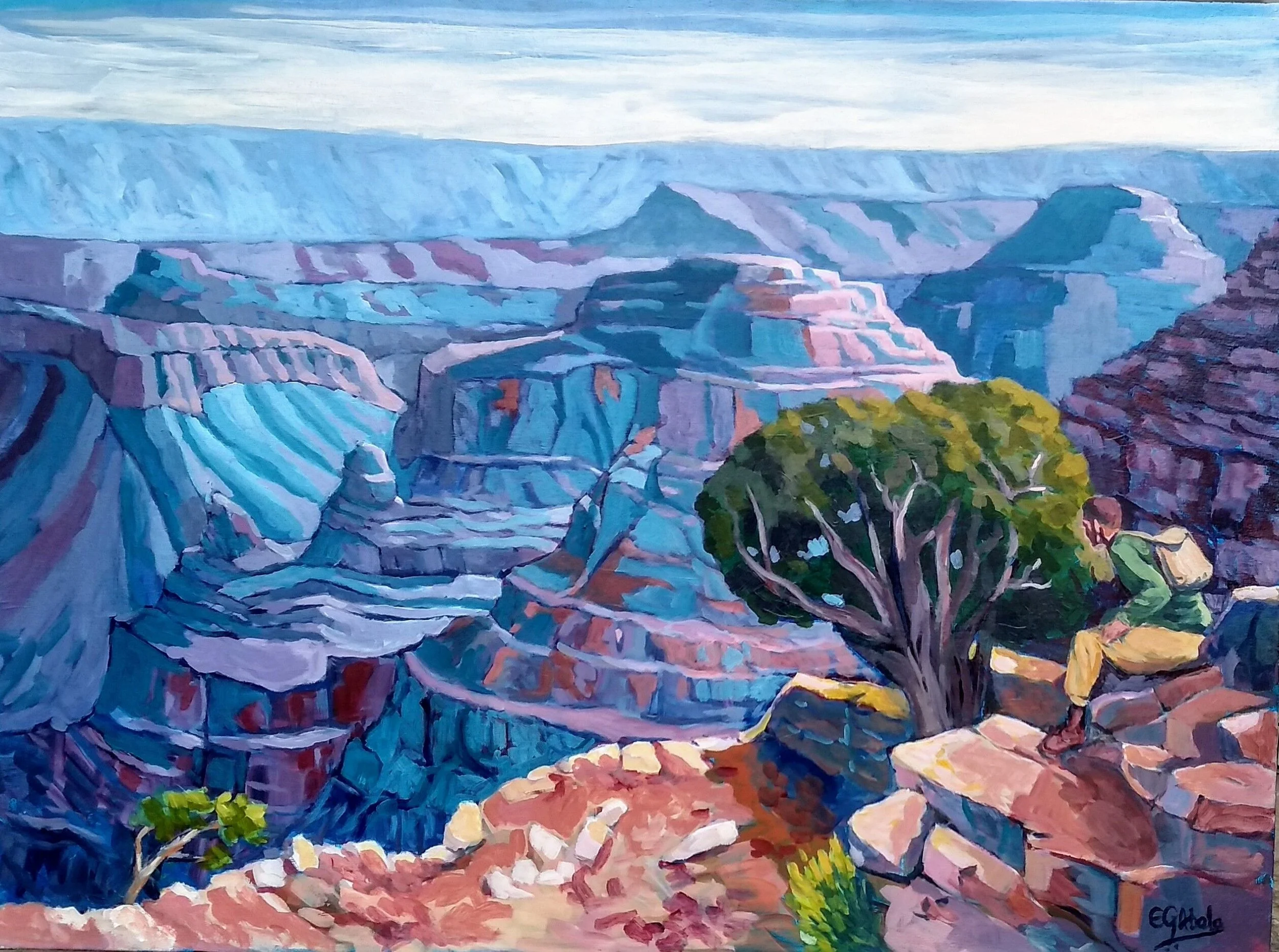 My painting of the Grand Canyon featured in the Saatchi Art Home Page "Wild West" Collection on August 12.Visit https://www.saatchiart.com/art-collec…/…/1088288/298086/view